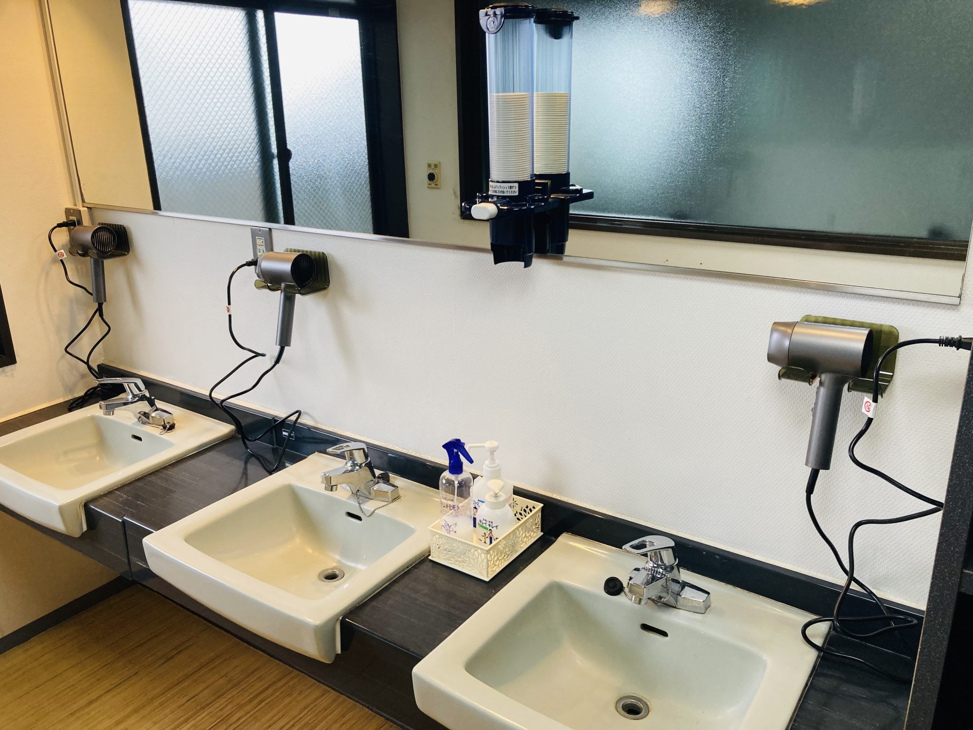 この建物の建設当時、ある程度の人数が同時に大浴場を利用することが容易に想像できたにも関わらず、なぜドライヤー用のコンセントがここの1箇所しか設置されなかったのか、大いに疑問です🤷♂️
